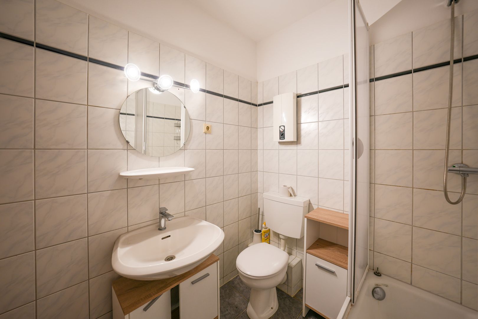 Im 1. OG steht Ihnen eine leerstehende 3-Zimmerwohnung verteil auf 2 Schlafzimmer, einem großen Wohn-Essbereich, einer Küche sowie Badezimmer mit Dusche zur Verfügung.