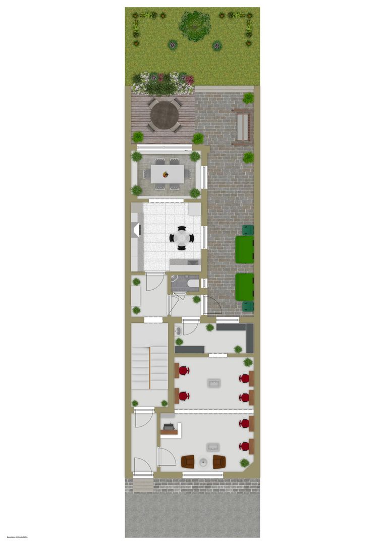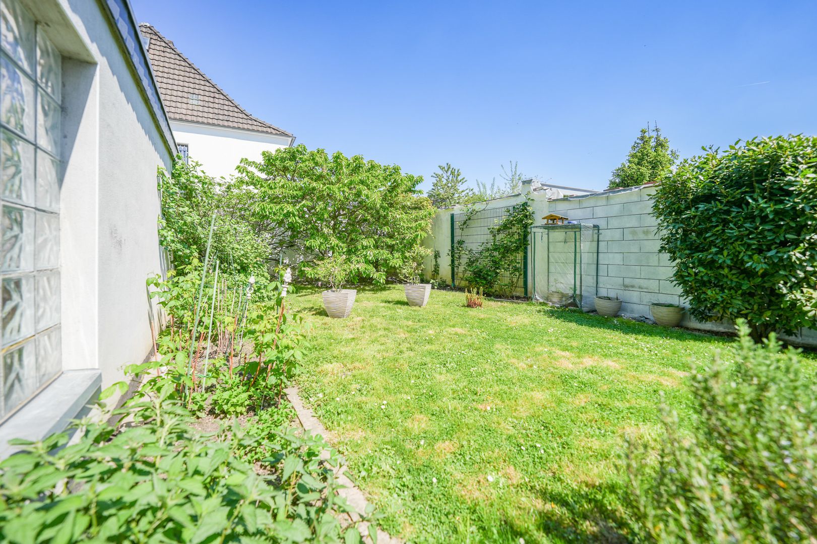 Der Wohnbereich strahlt Charme und Struktur aus. Der private Wohnbereich beginnt ebenfalls im Erdgeschoss, mit einer Küche und einem Essbereich, der direkt in den grünen Garten führt – ein Rückzugsort mitten im Alltagstrubel. Ob eine erholsame Pause im Freien oder ein entspannter Abend mit der Familie: Hier vermischen sich Arbeits- und Lebenswelten auf natürliche Weise.