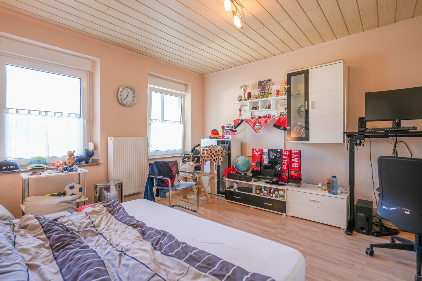 Im Obergeschoss dieser Immobilie erwartet Sie ein großzügiger, lichtdurchfluteter Wohnbereich. Ein zusätzlicher Raum bietet die Flexibilität, ihn als Kinderzimmer oder Arbeitszimmer zu nutzen, und kann somit an Ihre individuellen Bedürfnisse angepasst werden.