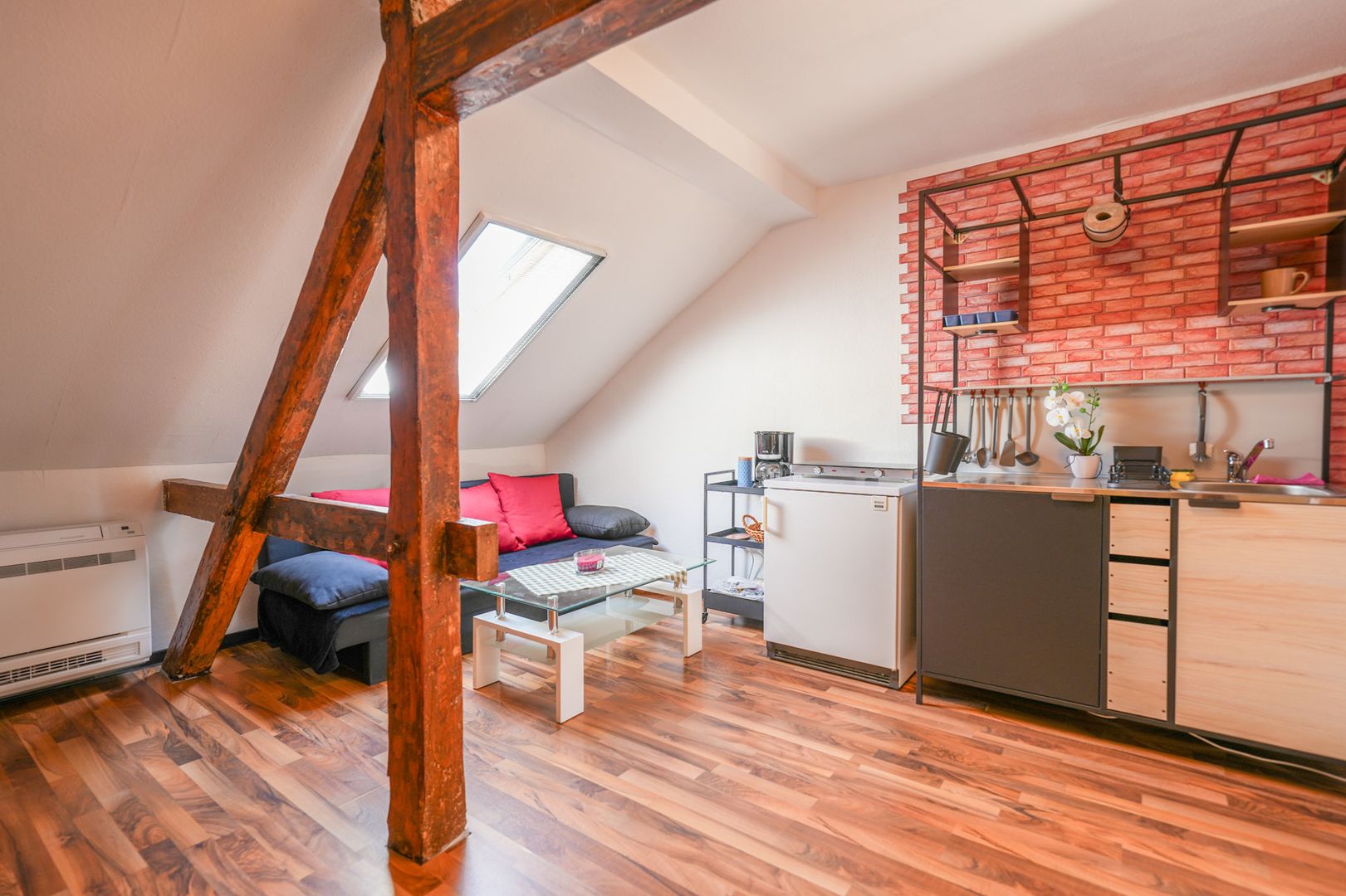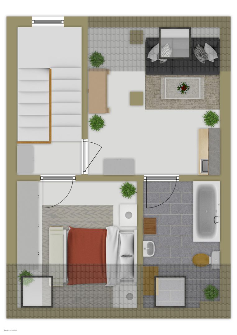 Das Dachgeschoss als Nutzfläche betrachtet, bietet sowohl Raum als auch Ruhe: ein gemütlicher Schlafbereich, ein weiterer Wohnraum und ein stilvolles Badezimmer mit Badewanne runden das Angebot ab.