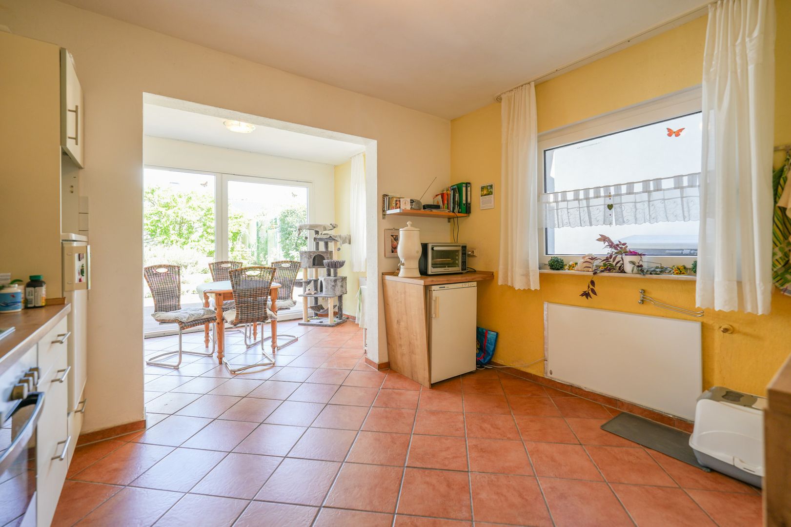 Separater Wohnbereich: Küche und Essplatz mit Gartenzugang – ideal für urbanes Wohnen mit privatem Rückzugsort