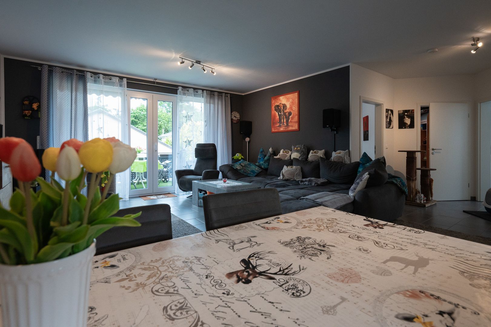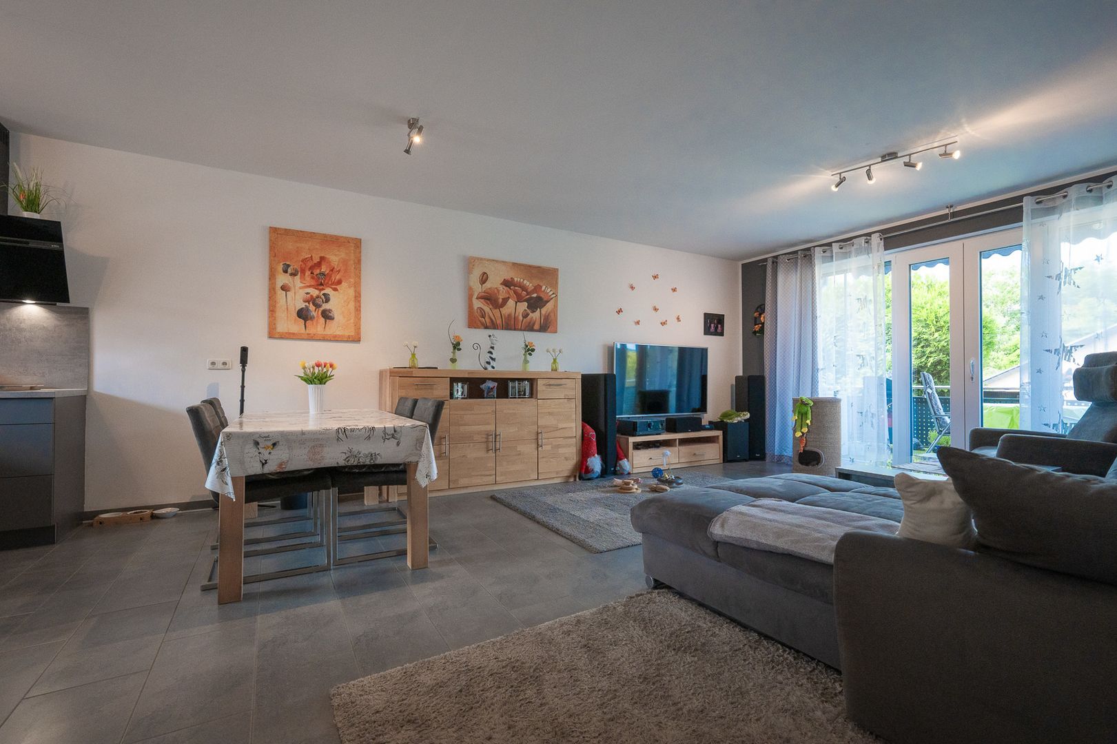 - Offener Wohn-, Ess- und Kochbereich mit Zugang zum überdachten Balkon (Rückseite, sehr ruhig)