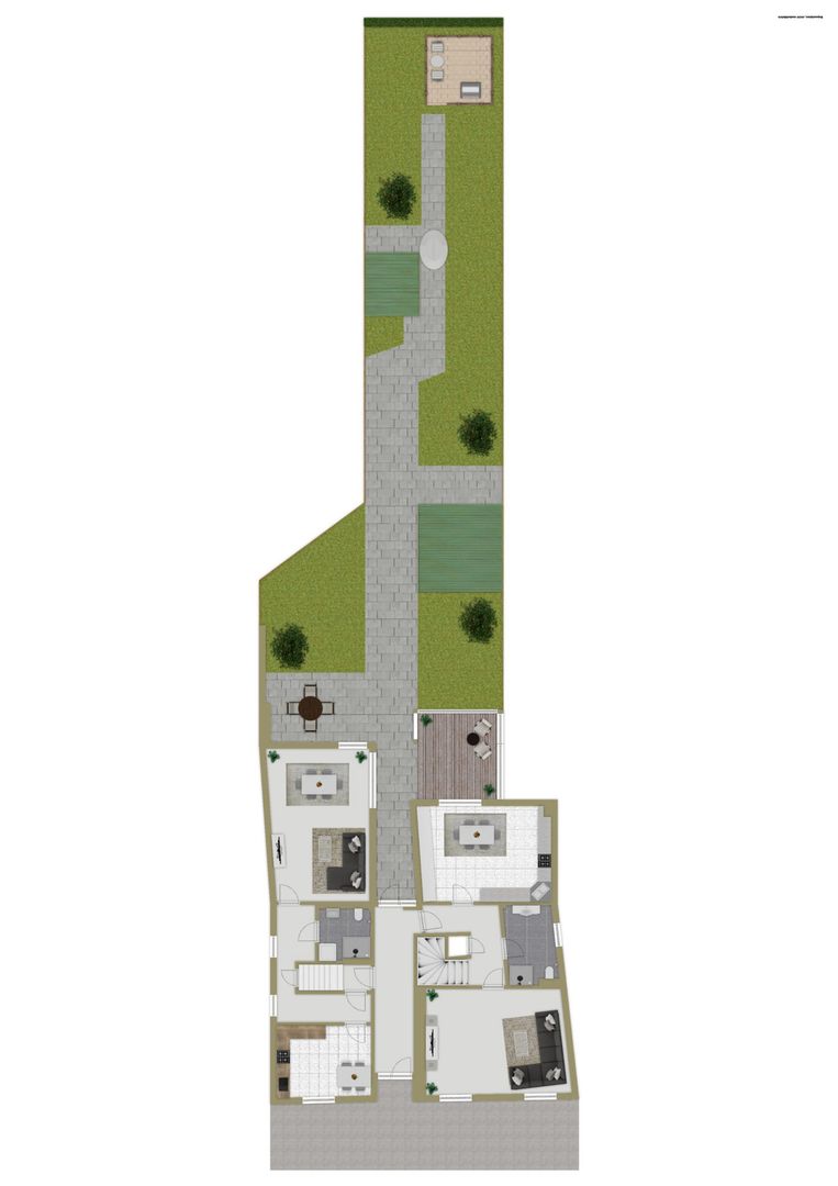 - Erdgeschoss: Küche, Wohnbereich, Tageslichtbad mit Dusche