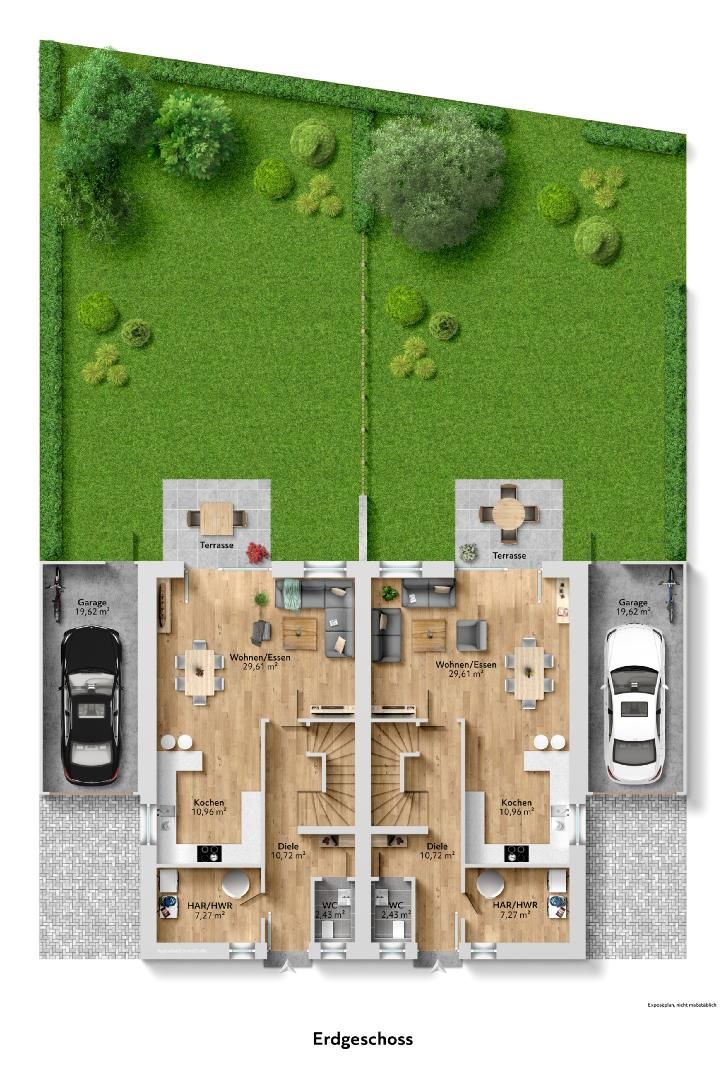 Die Wohn-und Nutzfläche der in 1 1/2- geschossiger Massivbauweise erstellten Doppelhaushälften beträgt ca.126 m². Zu dem Objekt gehört eine 3m x 7m Garage. Die Grundstücke haben einen optimalen Zuschnitt und eine sonnige Ausrichtung. Moderne Häuser für Familien, die urbanes Wohnen im Grünen bevorzugen!