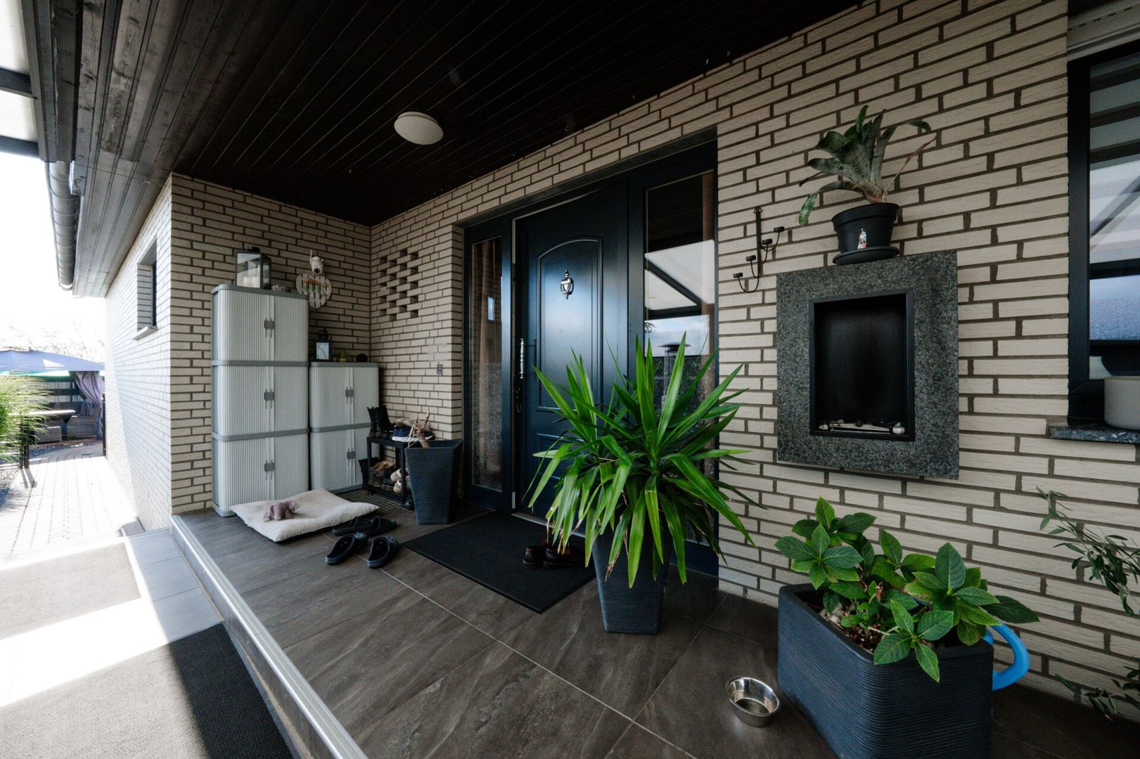 - Einfahrt mit überdachtem Vorbereich zum Haus – Komfort bis zur Haustür.