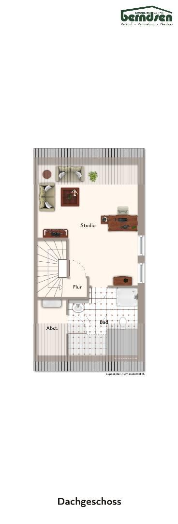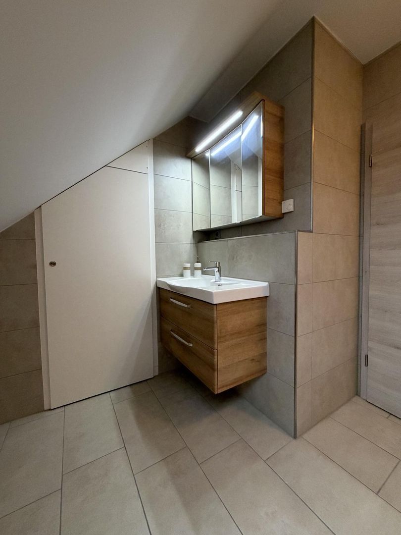 Das Dachgeschoss wurde zu einem großzügigen Studiozimmer mit bodentiefen Fenstern und einem zusätzlichen Duschbad ausgebaut perfekt als Rückzugsort, Home Office oder Gästezimmer.
