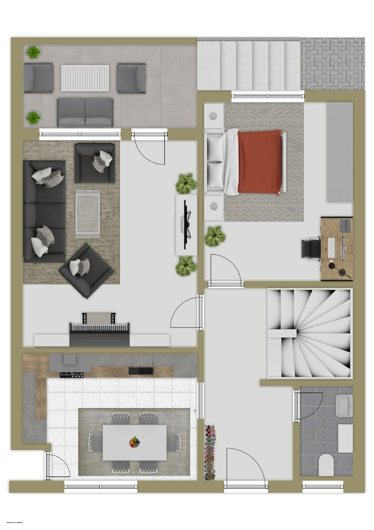Ein besonderes Highlight ist das großzügige Schlafzimmer im Erdgeschoss, das für besonderen Komfort sorgt. Die gepflegte Grundstücksfläche von 245 m² lädt zu individuellen Gartengestaltungen ein und bietet mit einer einladenden Terrasse sowie einer Loggia mit direktem Zugang zum Garten den perfekten Ort zum Entspannen und Erholen.