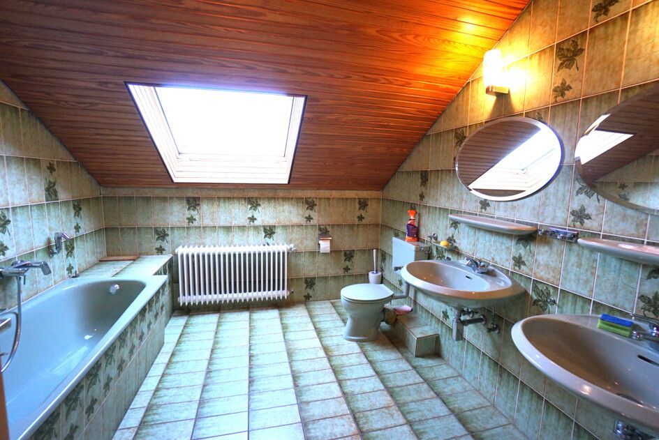 Das Erdgeschoss bietet Ihnen einen großzügigen Flur, ein großes Wannenbad sowie ein kleineres Duschbad und aktuell eine eher kleine Küche, welche Sie jedoch durch einen Durchbruch zum Ess- und Wohnzimmer deutlich vergrößern können, wenn gewünscht.