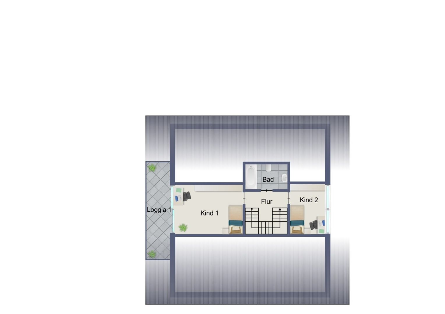 Hierüber ist auch der Zugang zu einer Loggia gegeben.