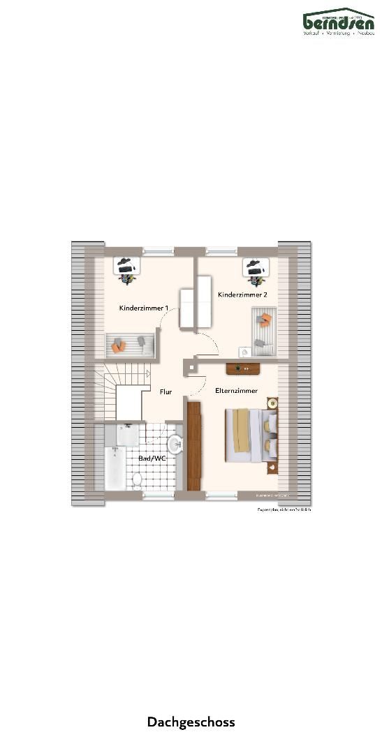 Dachgeschoss: Flur, Elternzimmer, Badezimmer, Kind I und Kind II