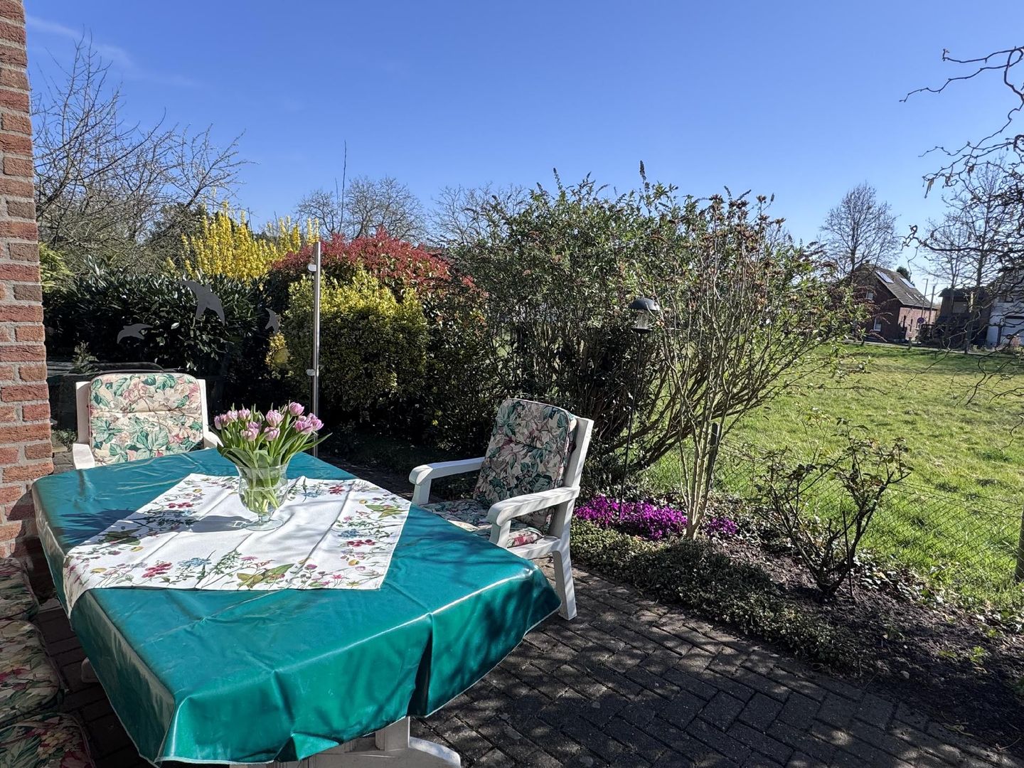 Das Haus befindet sich in einer ruhigen Anliegerstraße bzw. einem ruhigen Stichweg des Ortseingangs von Rees.
