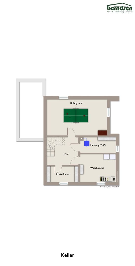 Kellergeschoss: Flur, Hobbyraum, Heizungsraum, Waschküche, Vorräte