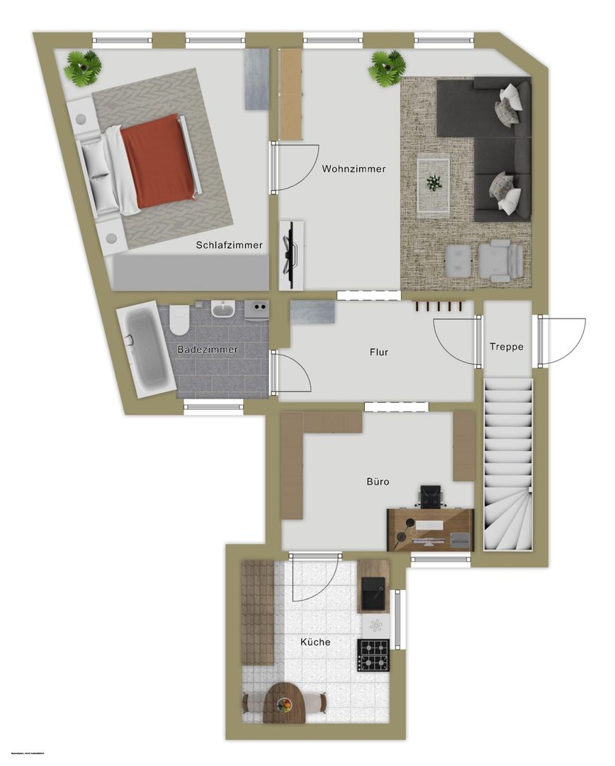 - OG rechts: ca. 43 m² – aktuell vermietet für 410 €