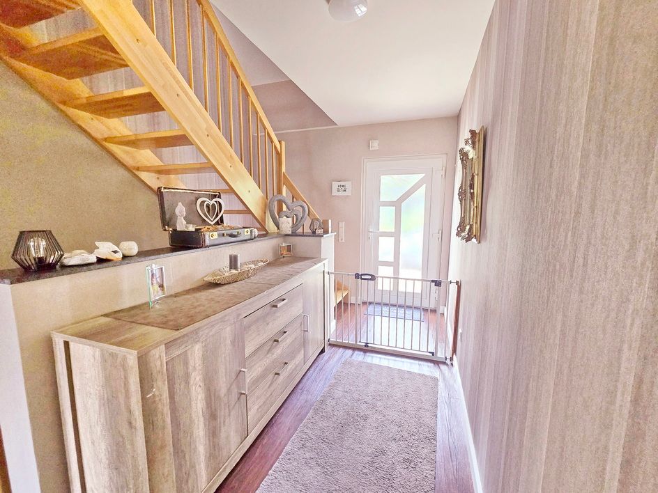 Beim Betreten des Hauses werden Sie sofort von der hellen und einladenden Atmosphäre begeistert sein. Die fünf Zimmer bieten ausreichend Platz für die ganze Familie oder kreative Entfaltungsmöglichkeiten. Die großen Fenster mit 3-fach Verglasung sorgen für eine optimale Lichtdurchflutung und eine angenehme Wohnatmosphäre.