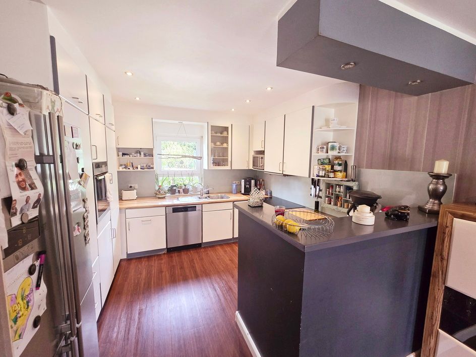 Die offene Einbauküche ist ein echtes Highlight und lädt zum gemeinsamen Kochen und Verweilen ein.
