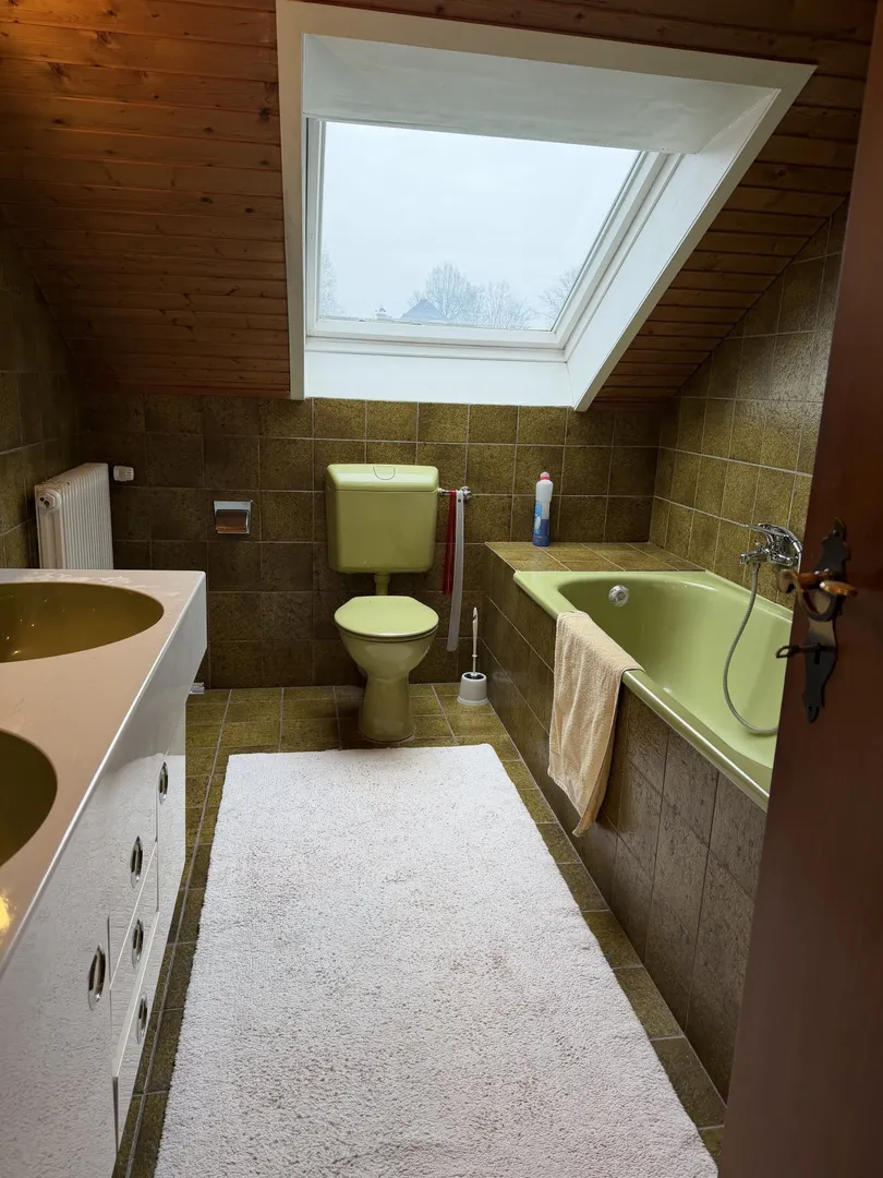 ° Badezimmer mit Dachflächenfenster, Badewanne und Dusche