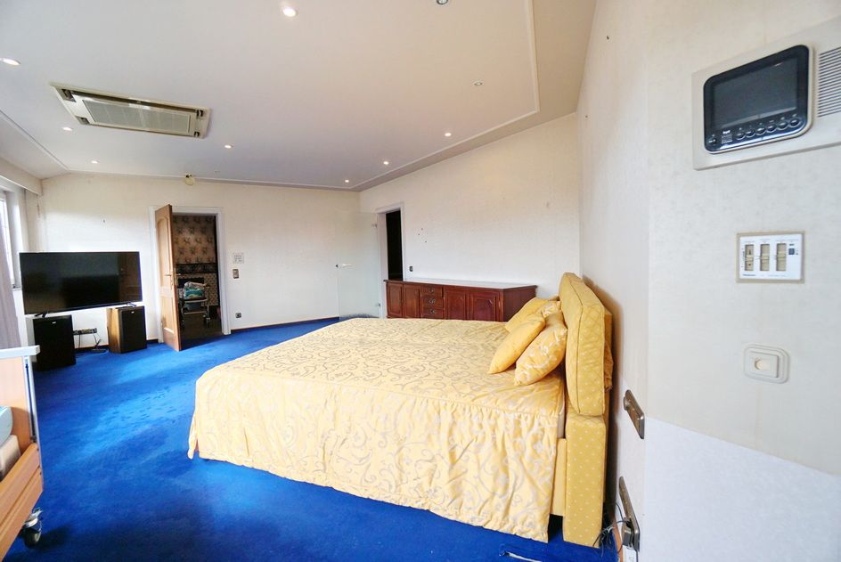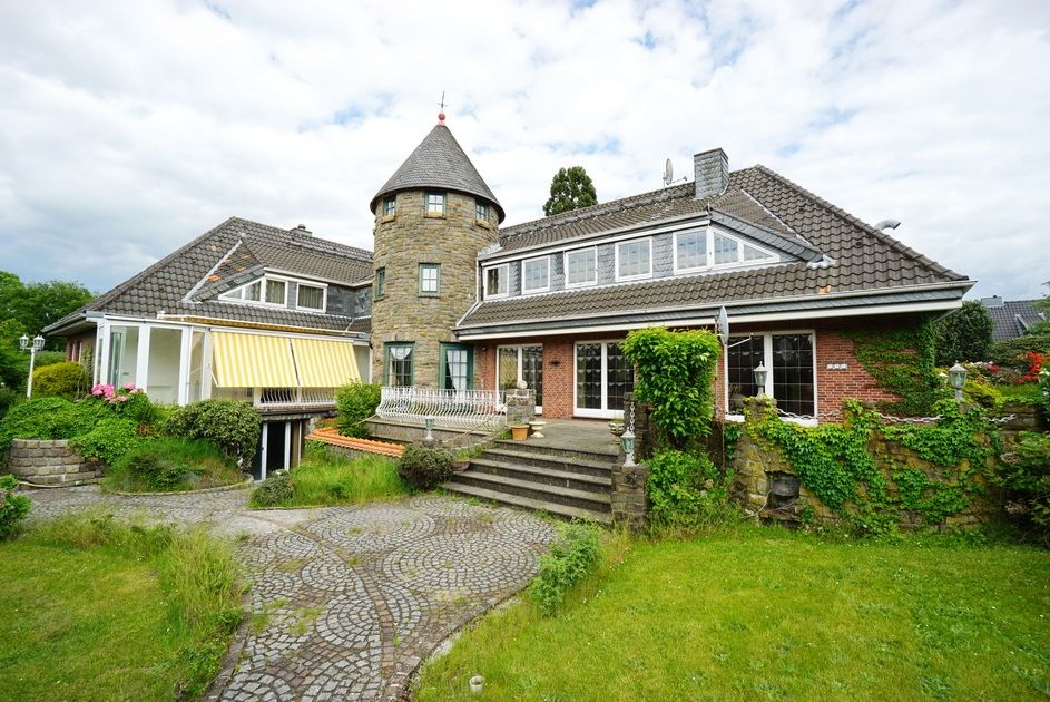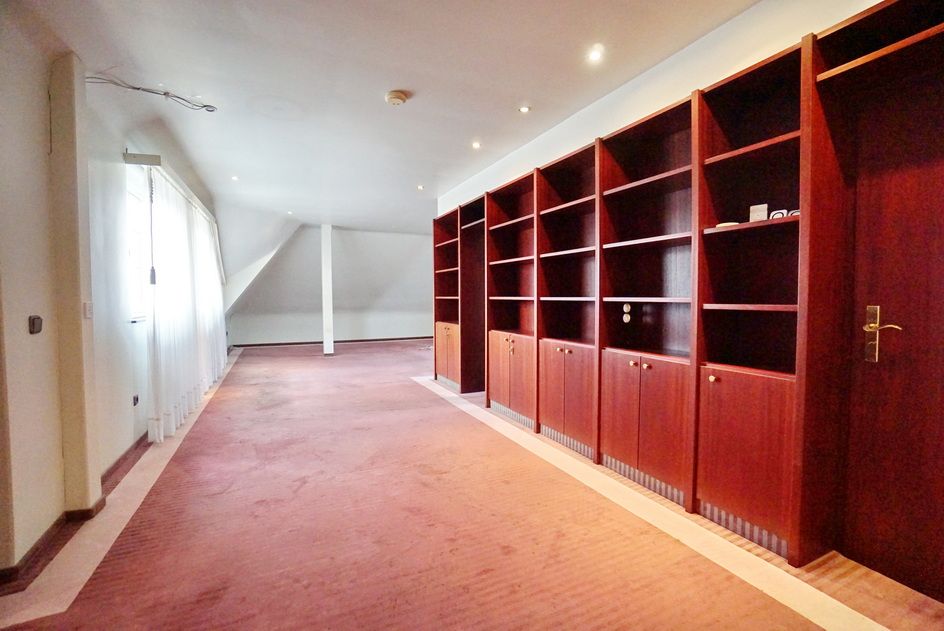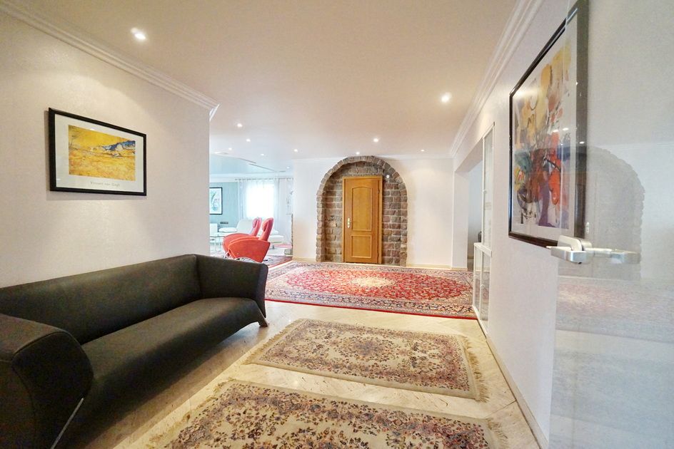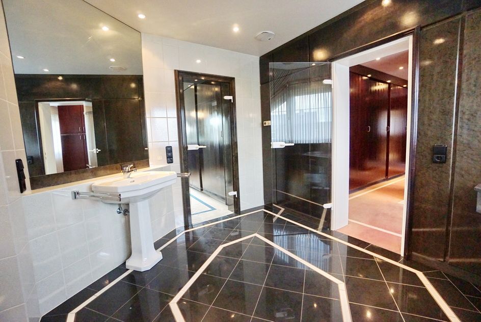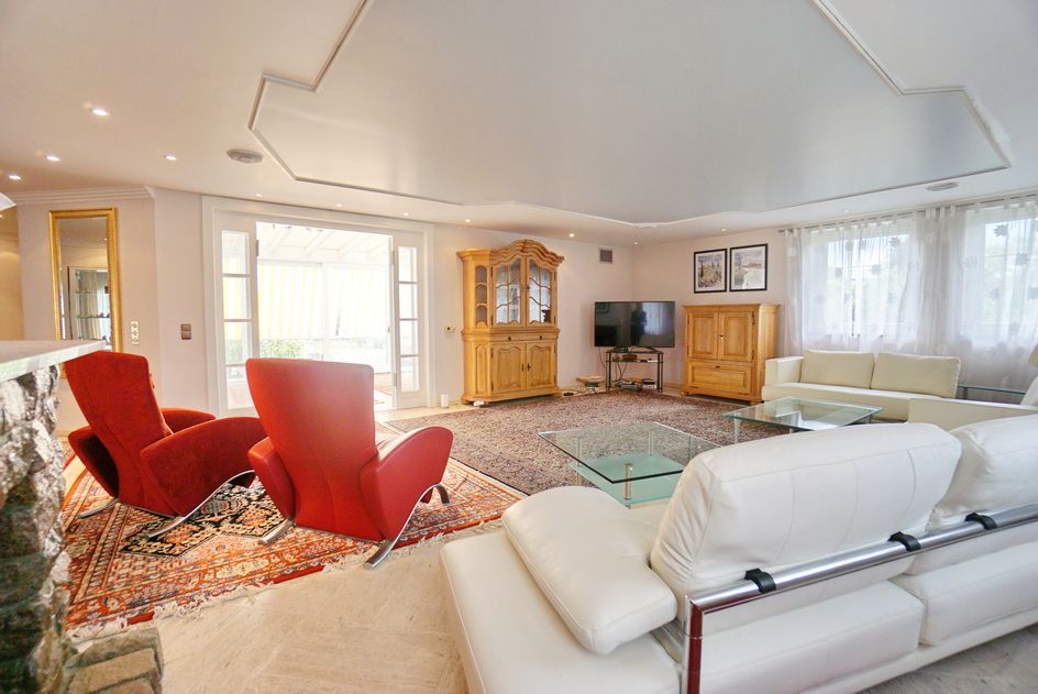 Der imposante Eingangsbereich mit einem herrschaftlichen Treppenhaus im kleinen Zwiebelturm zieht sofort alle Blicke auf sich. Bereits hier lässt sich erahnen, welche Großzügigkeit diese Immobilie bietet. Viele Fenster und zahlreiche bodentiefe Terrassenelemente sorgen für lichtdurchflutete Räume, die sich ideal für verschiedene Stilarten eignen. Mit mehreren Schlafzimmern, Ankleidezimmern und Bädern ist dieses Haus perfekt für mehrere Generationen geeignet. Zur Nutzung als Zweifamilienhaus steht ein separater Eingang zur Verfügung. Dieser Bereich ist auch als Bürofläche ideal geeignet, sodass Sie Arbeit und Privatleben perfekt kombinieren können. Die offene Raumgestaltung ermöglicht es Ihnen, Ihre individuellen Vorstellungen zu verwirklichen und kreative Arbeitsbereiche zu schaffen.