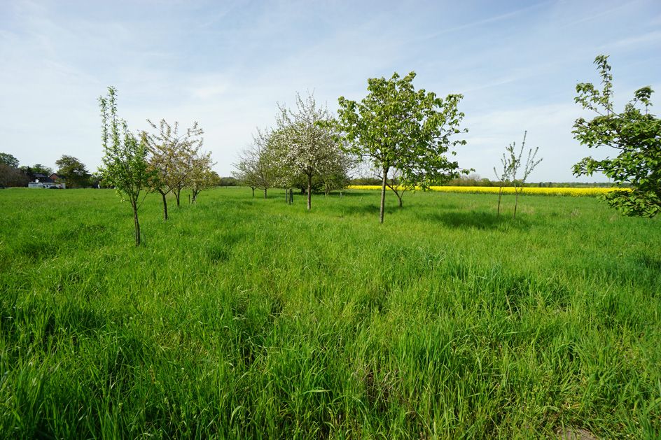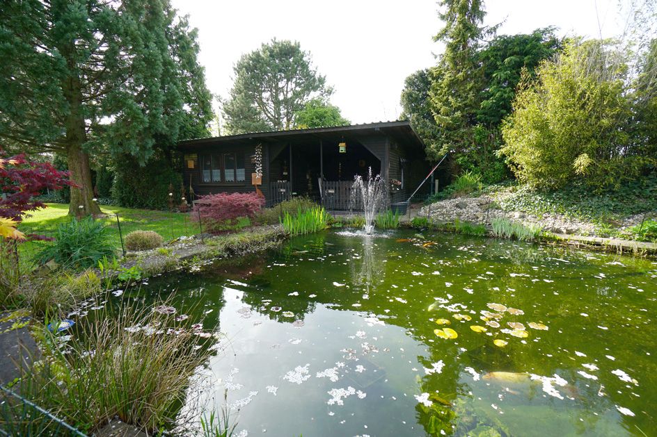 Das malerisch angelegte Grundstück bezaubert mit seinem Koiteich, der nicht nur ein ruhiges und entspannendes Ambiente schafft, sondern auch eine natürliche Oase für verschiedene Pflanzen- und Tierarten darstellt. Der sanfte Klang des Wassers und das harmonische Zusammenspiel von Licht und Schatten schaffen eine unwiderstehliche Atmosphäre, die zum Verweilen und Entspannen einlädt. Darüber hinaus erstreckt sich eine großzügige Streuobstwiese über das Grundstück, die mit einer Vielzahl von Obstbäumen bepflanzt ist.