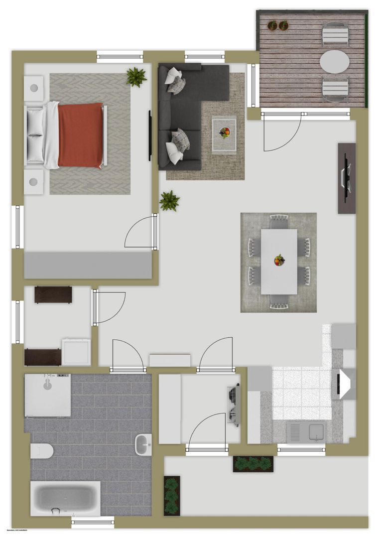 Auf rund 72 m² entfaltet sich ein Wohnkonzept, das Offenheit und Struktur perfekt vereint. Der großzügige Wohn-, Ess- und Kochbereich ist das Herzstück der Wohnung – ein Ort, an dem sich Alltag und Genuss auf natürliche Weise verbinden. Der überdachte Balkon erweitert den Raum ins Freie und schafft eine Atmosphäre, die zum Innehalten und Durchatmen einlädt – ob beim ersten Kaffee des Tages oder beim Glas Wein am Abend.