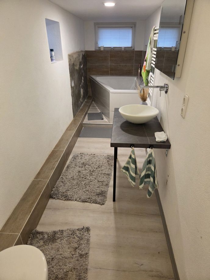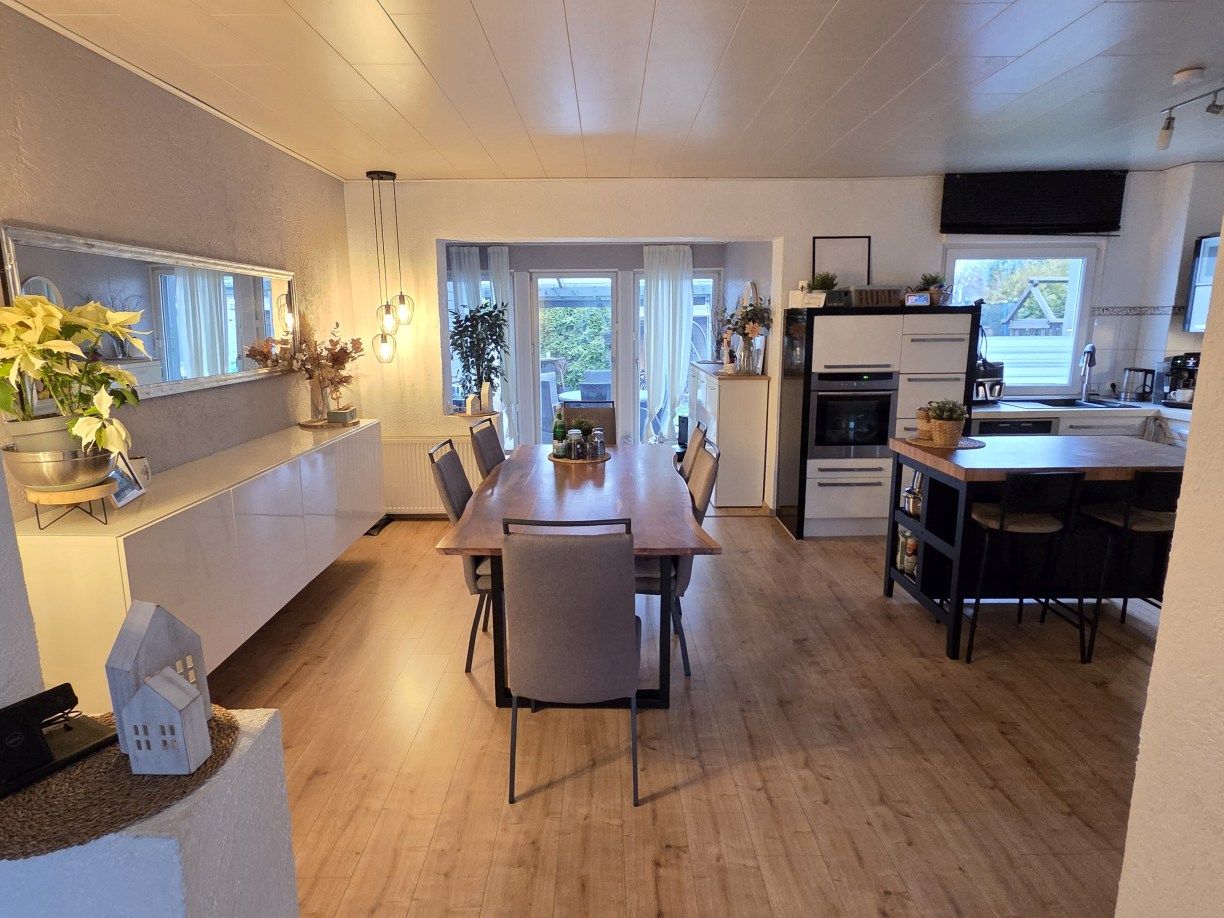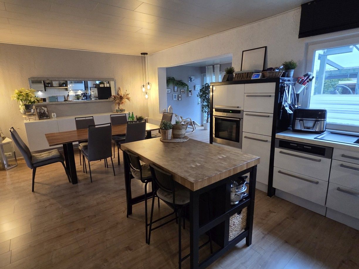 Einfamilienhaus aus 1955, von innen komplett modernisiert, großzügige Raumaufteilung mit satten 198 m² Wohnfläche zzgl. ca. 76 m² Nutzfläche im Untergeschoss, Massivbauweise, 1 1/2-geschossig mit zusätzlich ausgebautem Spitzboden. Insgesamt 5 Schlafräume plus Gäste-Zimmer im UG, großzügige, offene Küche und Wohnbereich mit insgesamt ca. 61 m² - EBK bereits im Kaufpreis enthalten.