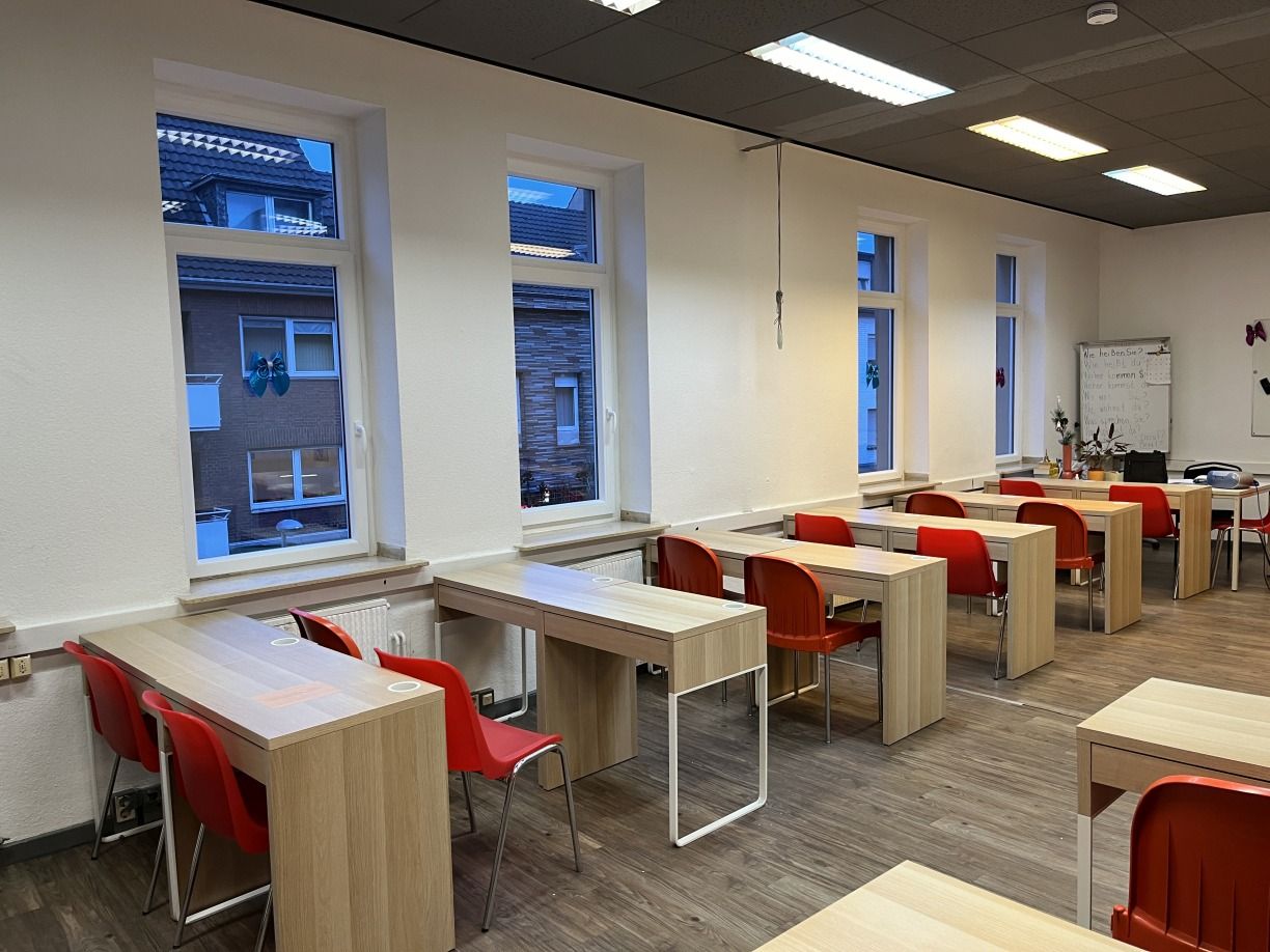 Die Schulungsräume mit eigenem Eingang von der Homberger Straße aus sind dagegen relativ einfach aber zweckmäßig ausgestattet. Die Fenster sind überwiegend aus Kunststoff und isolierverglast, die Böden sind mit Nadelfilz oder Laminat ausgelegt. Es stehen in den Vollgeschossen jeweils nach Geschlechtern getrennte, einfache WC-Anlagen zur Verfügung. Die Beheizung erfolgt über einen Fernwärmeanschluss.Der Standort dieser z.Zt. als Reha-Klinik bzw. als Schulungszentrum genutzten Liegenschaft verbindet in idealer Weise sämtliche Vorteile einer innerstädtischen Lage mit einer optimaler Verkehrsanbindung, insbesondere an das öffentliche Verkehrsnetz. So hält beinahe vor dem Haus eine Buslinie, die zum Königlichen Hof führt, der Moerser Bahnhof ist gerade einmal ca. 250 m entfernt.Die monatlich eingehende Kaltmiete beträgt aktuell EUR 5.810,- also EUR 69.720,- im Jahr . Der Mietvertrag im EG ist bis Ende 2028 befristet, er verlängert sich auf Wunsch des Mieters jeweils um weitere 5 Jahre. Der Mietvertrag ist indexiert. Der Mietvertrag des Lehrinstitutes ist hingegen unbefristet.