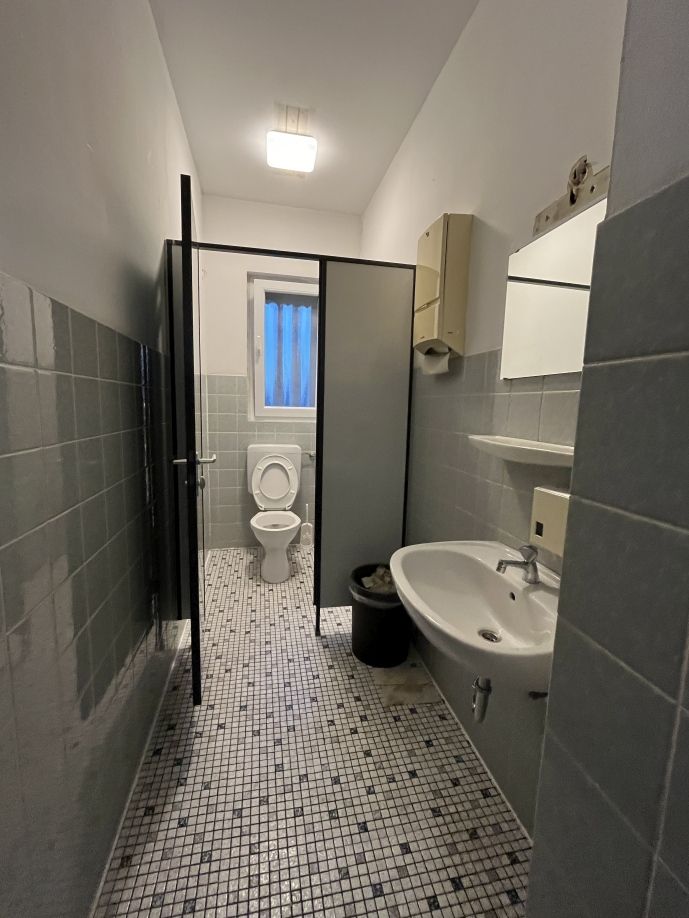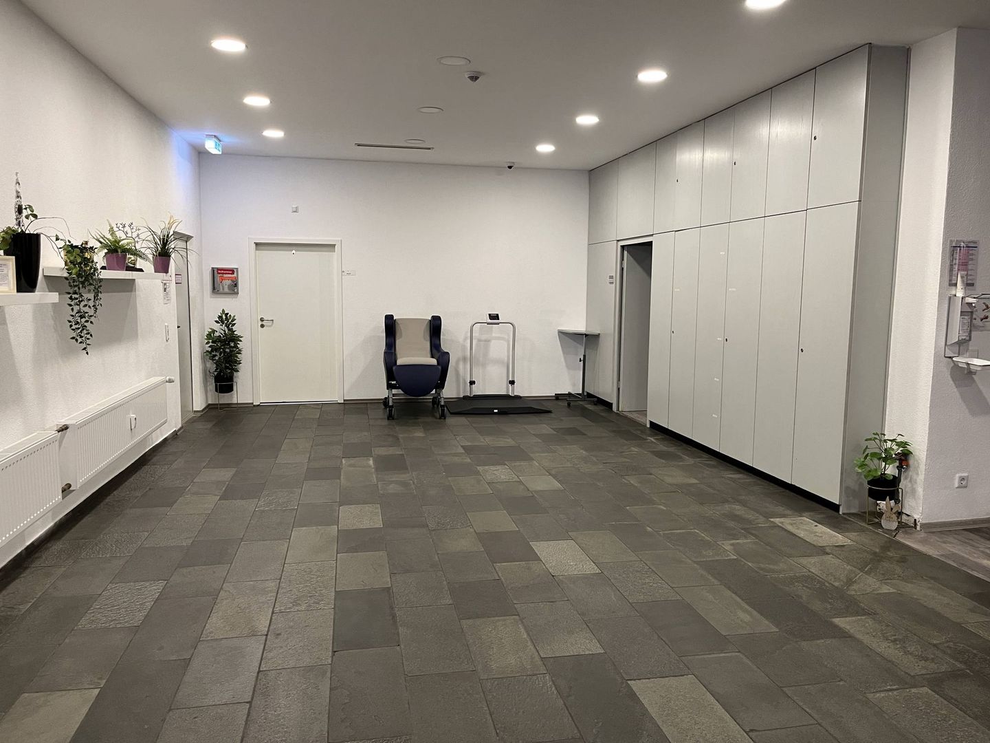 Das gut 800 m² große Grundstück ist bis auf einige gepflasterte PKW-Stellplätze auf der Rückseite fast komplett überbaut.Das Gebäude wurde seinerzeit sehr aufwändig, solide und repräsentativ errichtet. Besonders die Pflegeeinrichtung im Erdgeschoss präsentiert sich sehr hell und freundlich, besonders großzügig sind hier die gemeinschaftlich genutzten Räumlichkeiten wie der Empfangsbereich und der Aufenthaltsraum ausgefallen. Die insgesamt sieben 1-Bett-Patientenzimmer sind mit neuen, behindertengerechten Bädern (max. 5 Jahre alt) ausgestattet.