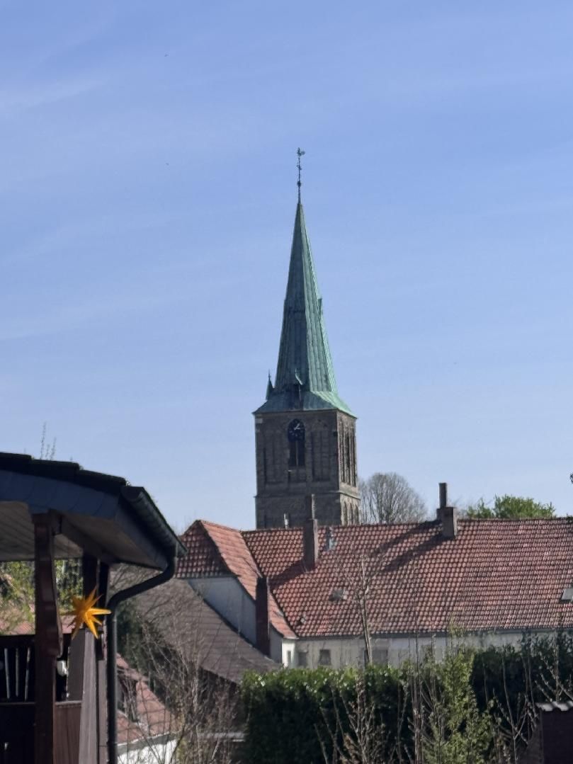Ein besonderer Blickfang: Der Balkon bietet freie Sicht auf die traditionsreiche Dorfkirche das Wahrzeichen des Viertels.