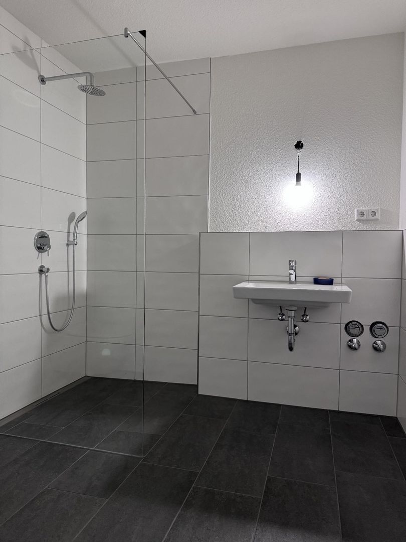 ° großzügiges barrierefreies Badezimmer mit begehbarer Dusche, ca. 8 qm Größe