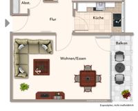 Die Wohnung ist klassisch geschnitten mit Flur, einem Schlafzimmer, Bad mit Duschwanne, Wohn-Esszimmer, separater Küche und nicht zu verachten- einem Abstellraum.
