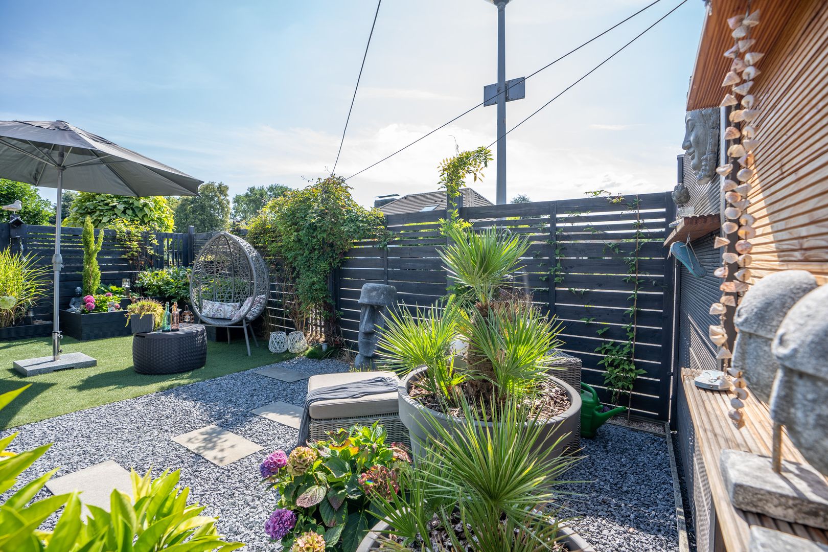 Sonne im Garten wird es immer geben, denn Sie haben sowohl vorne als auch im hinteren Bereich einen Garten. Suchen Sie sich zu jeder Tageszeit aus, ob Sie sich sonnen oder eher im Schatten mit Freunden grillen möchten.