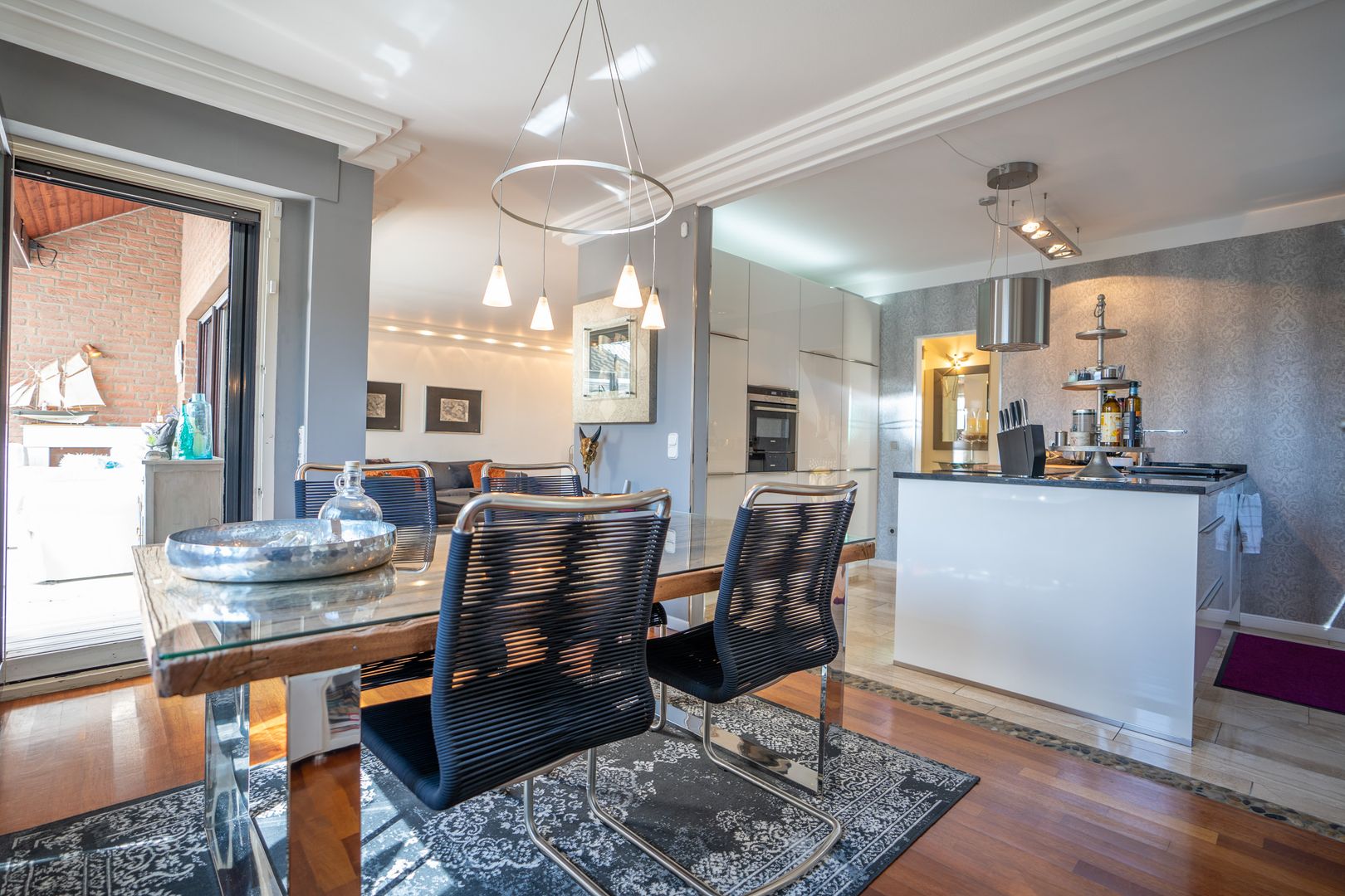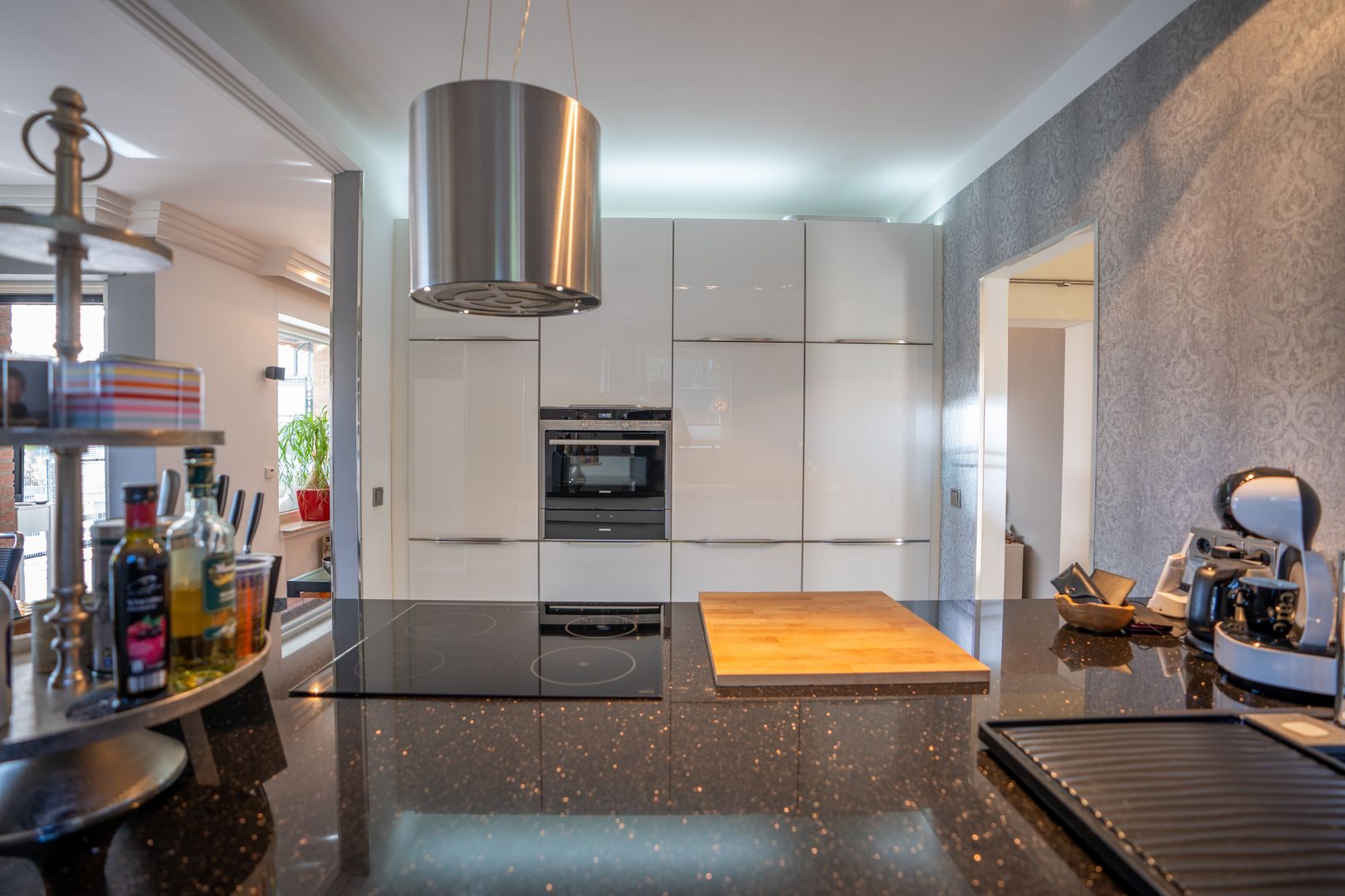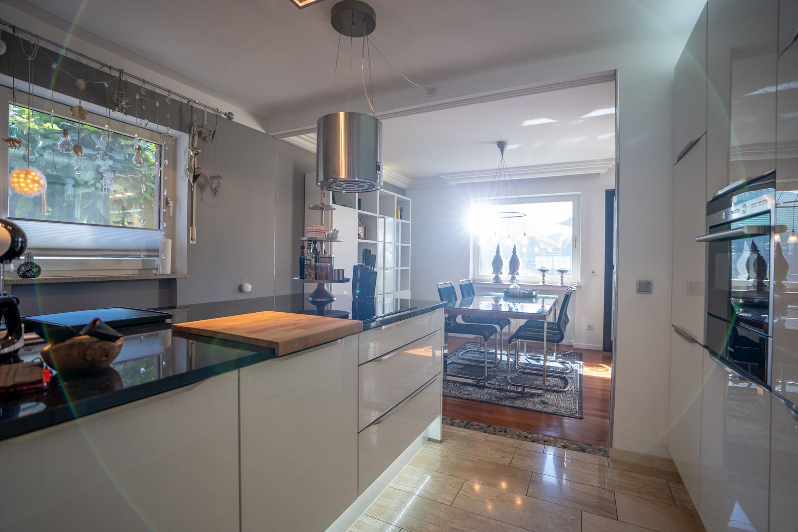 Alle Räume sind stillvoll, modern und individuell. Alles wirkt neu und liebevoll. Die Ausstattung und Einrichtung wünscht man sich. Die moderne Halbinselküche mit anschließendem Esstisch für die ganze Familie ist ein Traum. Der angrenzende Wohnbereich mit offenem Kamin ist sehr hell und gemütlich. Vom Wohnzimmer erreichen Sie bequem den großzügigen Wintergarten und den Vorgarten.