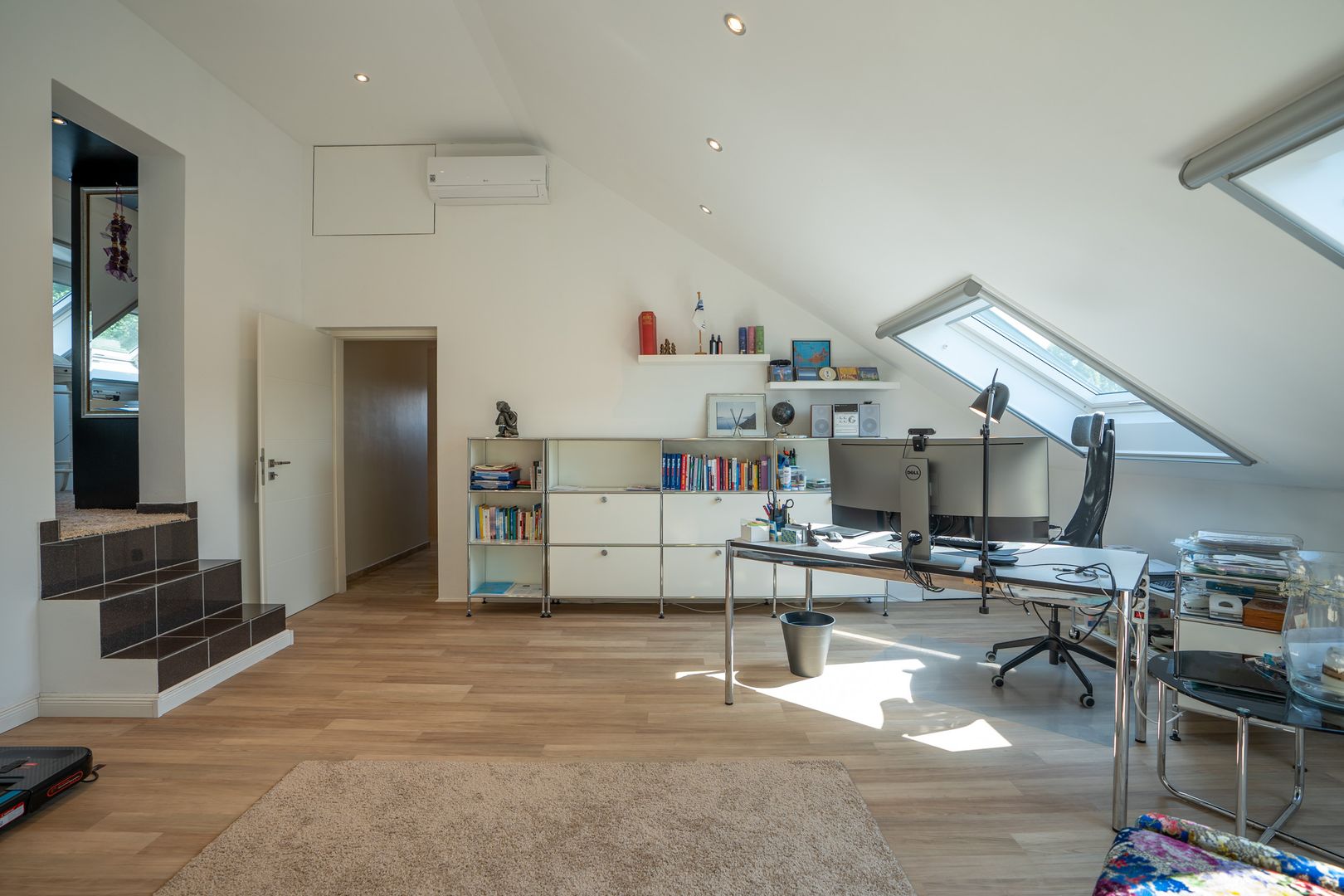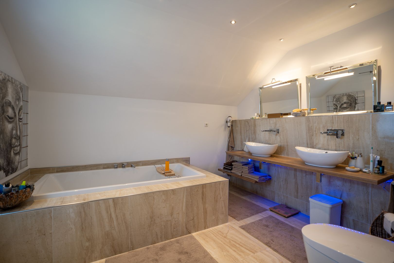 Kommen wir zum Obergeschoss. Haben Sie das Bad auf den Bildern gesehen? Live ist es noch viel schöner. Das angrenzende 23m² große Zimmer sowie das Ankleidezimmer komplementieren diese Etage.
