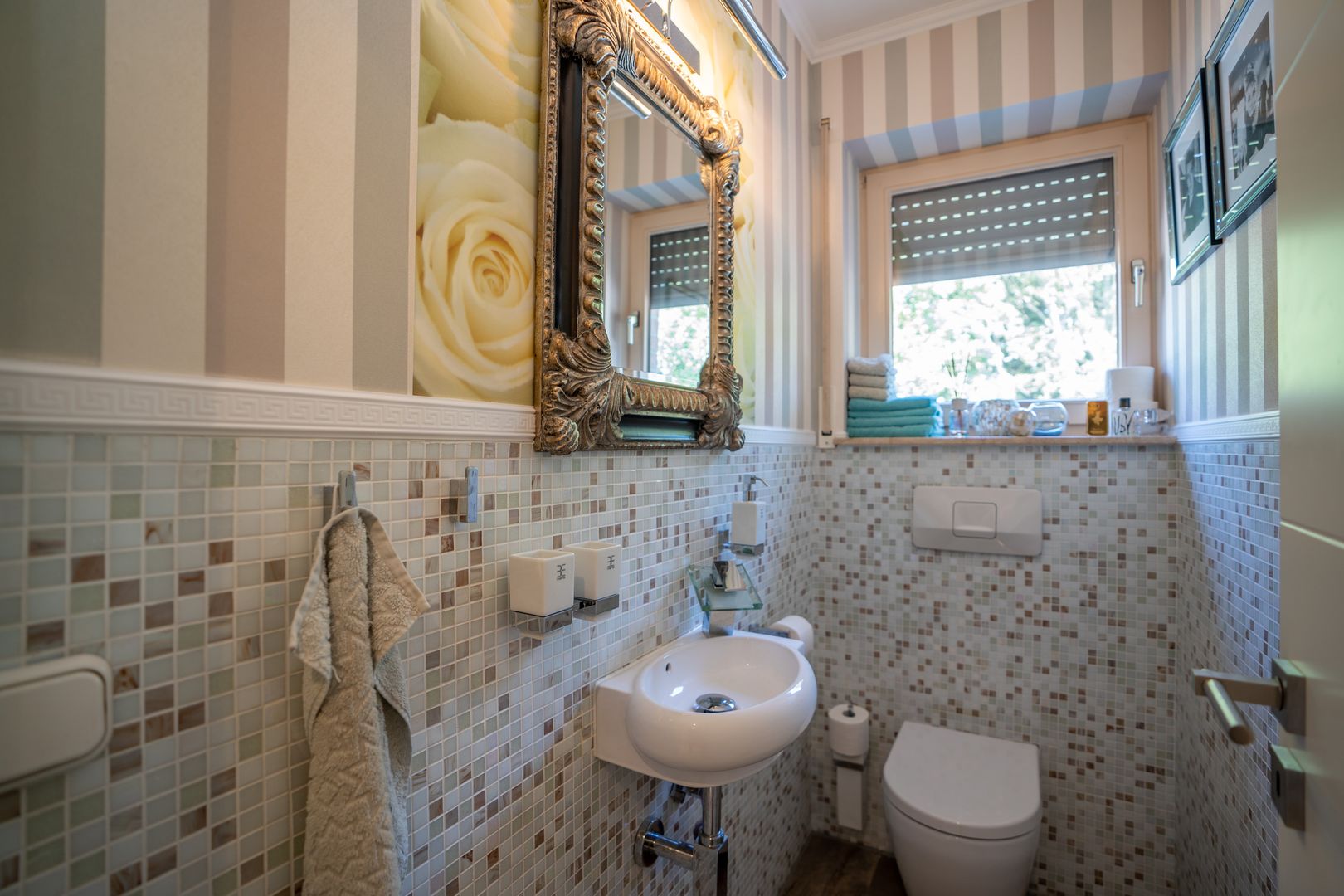 Ein weiteres Highlight befindet sich hinter der Tür im rückwärtigen Garten. Eine gepflegte grüne Rasenfläche mit dem Blick auf die Wurm, die hinter dem Haus verläuft.